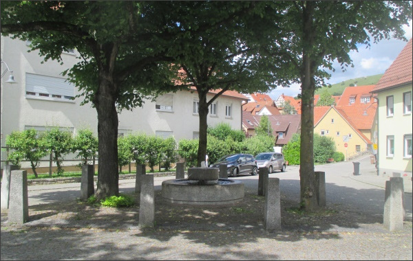 ![]() Der Platz wurde gepflastert, im Bereich der Linde wurde ein Brunnen errichtet, der die Mühlentradition in Owen verdeutlichen soll.