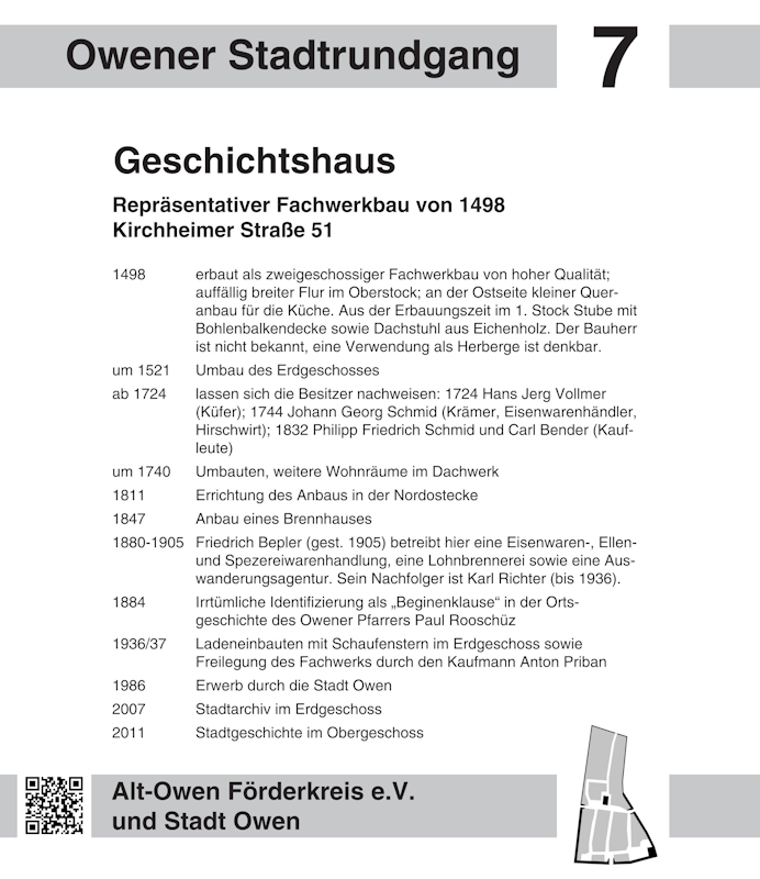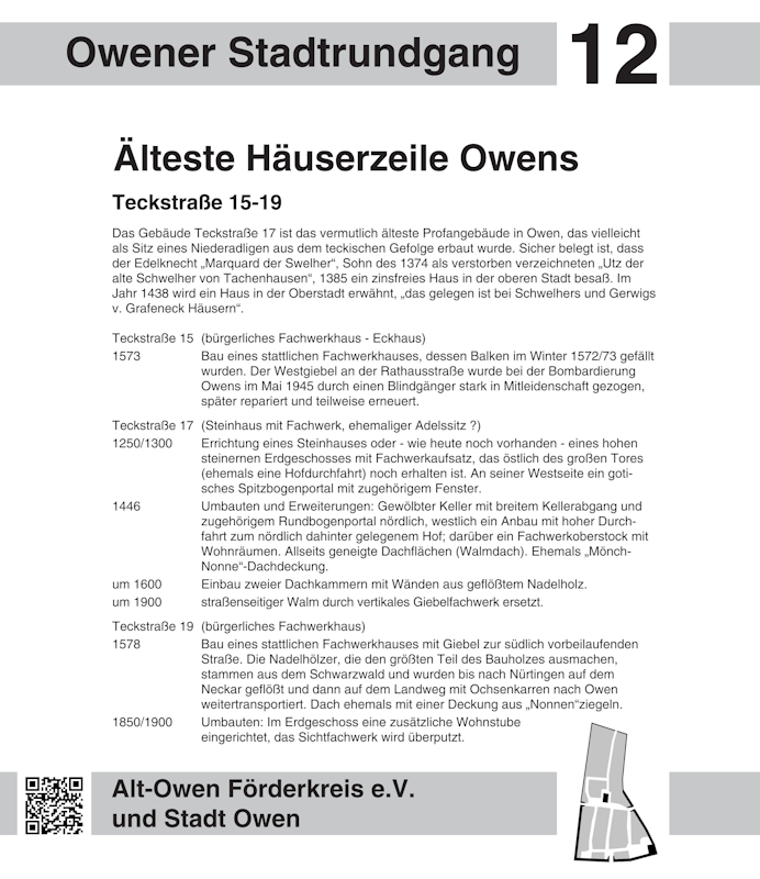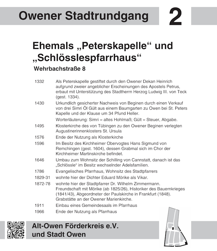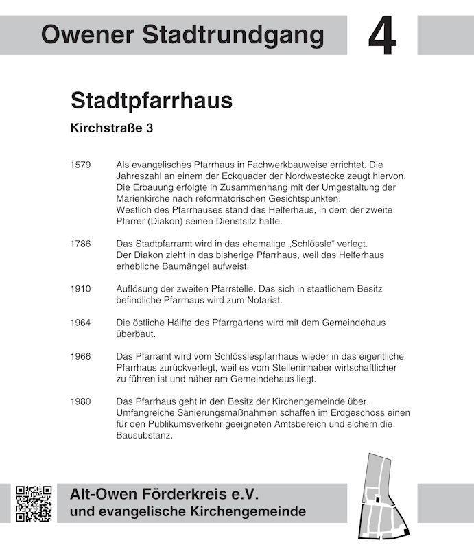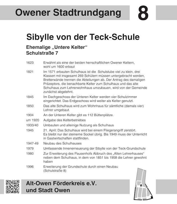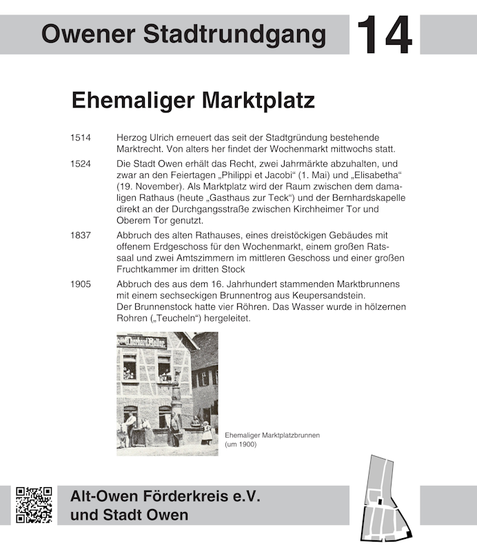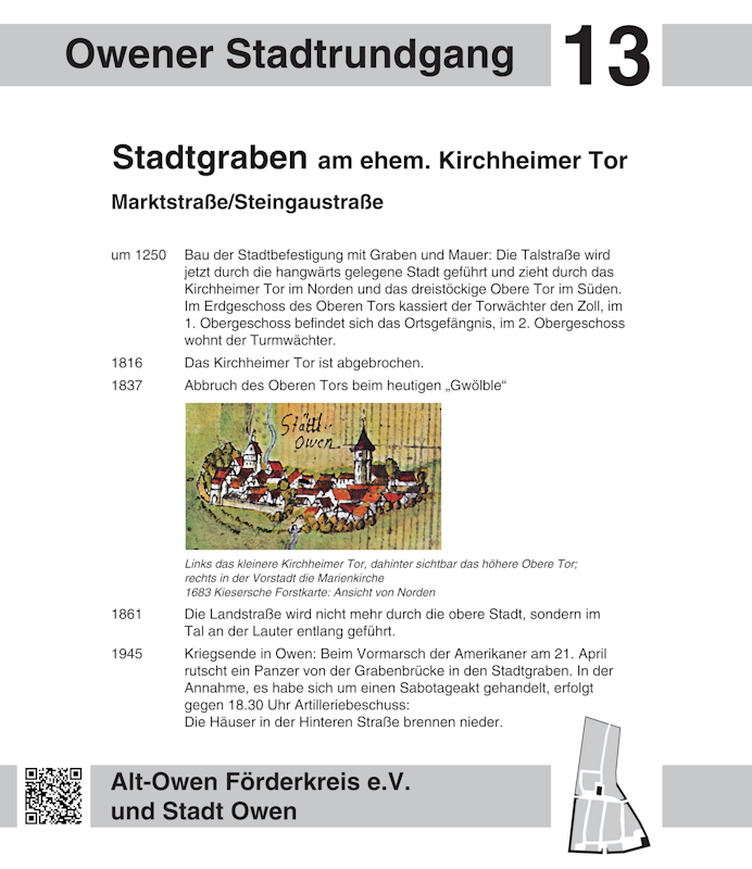 Liebe Besucherinnen und Besucher des virtuellen Historischen Stadtrundgangs in Owen: Mit einem Klick auf einen Wegepunkt in der Karte oder einen Eintrag in der Liste gelangen Sie zur Stationstafel und anschaulichen Bildern zur gewählten Station.